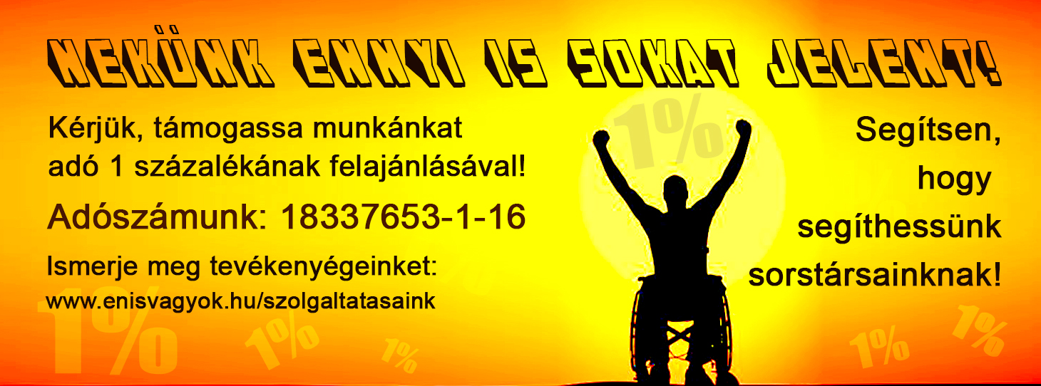 Tevékenységeinkkel fogyatékos sorstársaink számára lehetőség nyílik az egyenlő esélyű hozzáférés megvalósítására az élet minden területén. Minden évben a működésünkhöz és szakmai programjainkhoz elengedhetetlen támogatást nyújt az Ön Adó1% felajánlása.