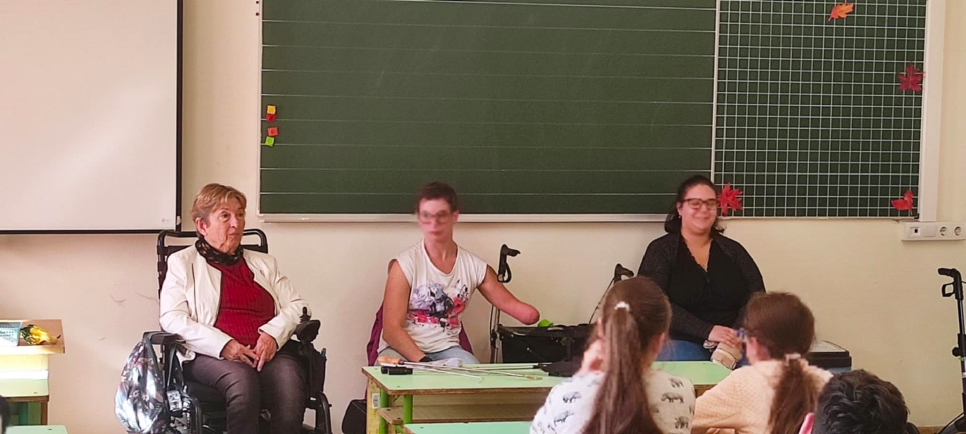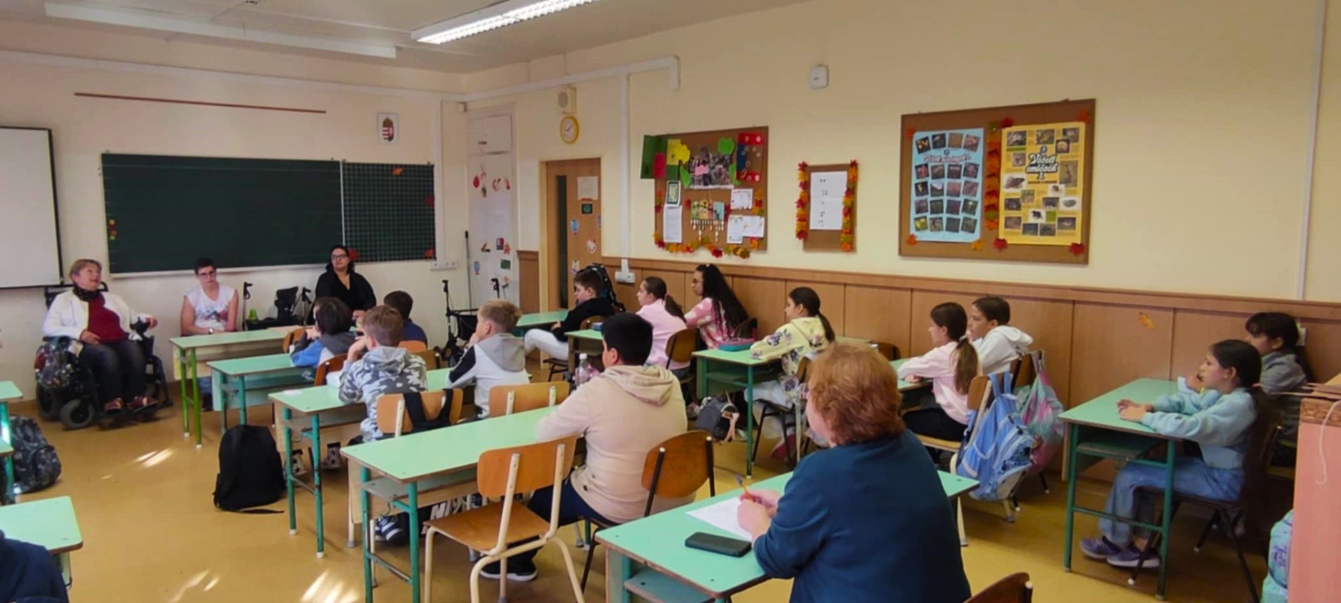A szandai iskolában már 14 éve visszatérő vendégek vagyunk, minden évben felkérnek minket, hogy az ötödikes évfolyam diákjainak tartsunk érzékenyítő, szemléletformáló foglalkozást. Ez alkalommal három munkatársunk 92 ötödikest avatott be kötetlen beszélgetés formájában a sorstársi élet rejtelmeibe, elősegítve az elfogadást, a mozgássérültekhez való pozitív viszonyulást.